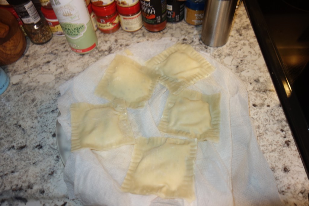 My leftover wonton wrappers from last weeks dim sum just became a vessel for ravioli filling. Ricotta, parm, oregano, lemon zest and salt and pepper. I used the sauce from the attached Emeril Lagasse recipe. https://www.foodnetwork.com/recipes/emeril-lagasse/goat-cheese-ravioli-with-creamy-walnut-sauce-3645208