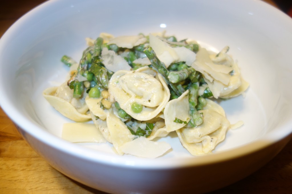 One thought on “Fresh Tortellini with Asparagus, Peas, and Mint”