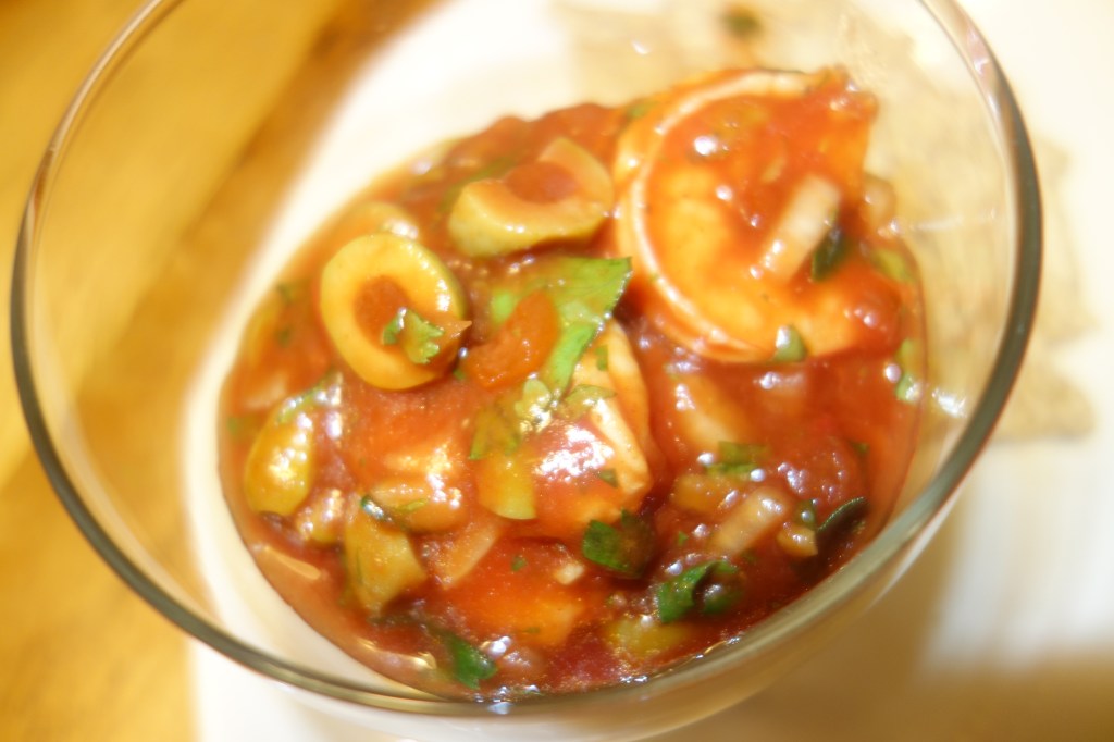 This recipe is from Chef Pati Jinich. We watched her eat her way through some coastal towns in Mexico and come home to make this very latin shrimp cocktail. It is very vibrant and refreshing.