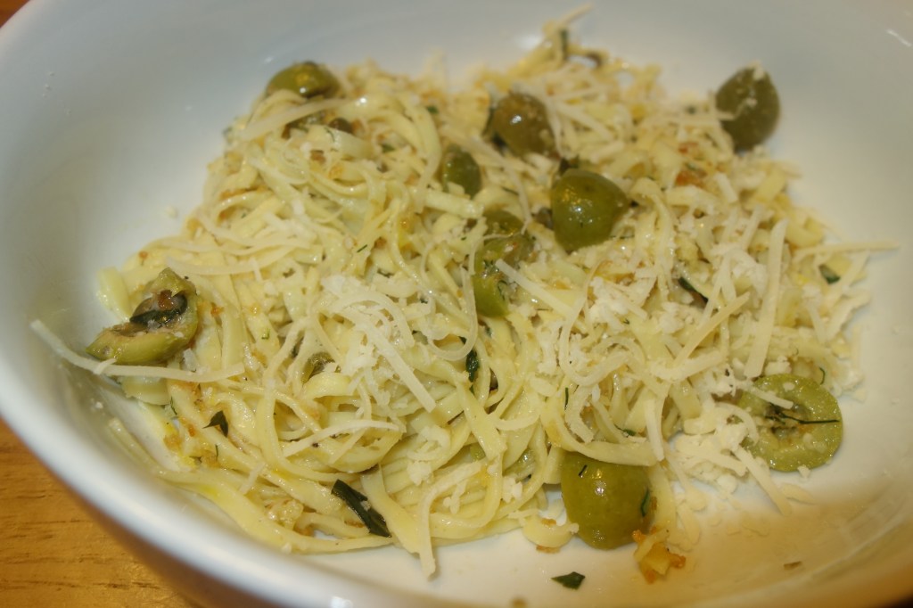 My picture looks nothing like the picture attached to the recipe. I had no parsley. This pasta is full of bright summer flavor. I am not an anchovy fan. So, I did not put the raw anchovy and garlic paste into the sauce. I sauteed it in the 1/2 cup of olive in warm pasta pot and continued with the recipe. I will make this one again! http://www.bonappetit.com/recipe/linguine-green-olive-sauce-zesty-breadcrumbs