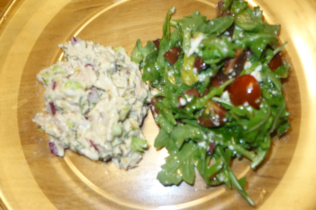 I adore this combination. I use to eat at this Greek restaurant that would serve a greek salad with a scoop of tuna salad on top.