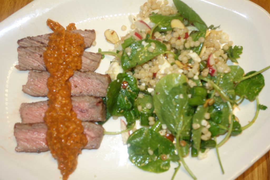 This week I started with my sides and when worked in the protein. My sides come from The Side Bible from America’s Test Kitchen, which I checked out last week from the library. I saw this couscous with the sherry vinegar and smoked paprika and immediately thought romesco. https://www.mastercook.com/app/Recipe/WebRecipeDetails?recipeId=15585470