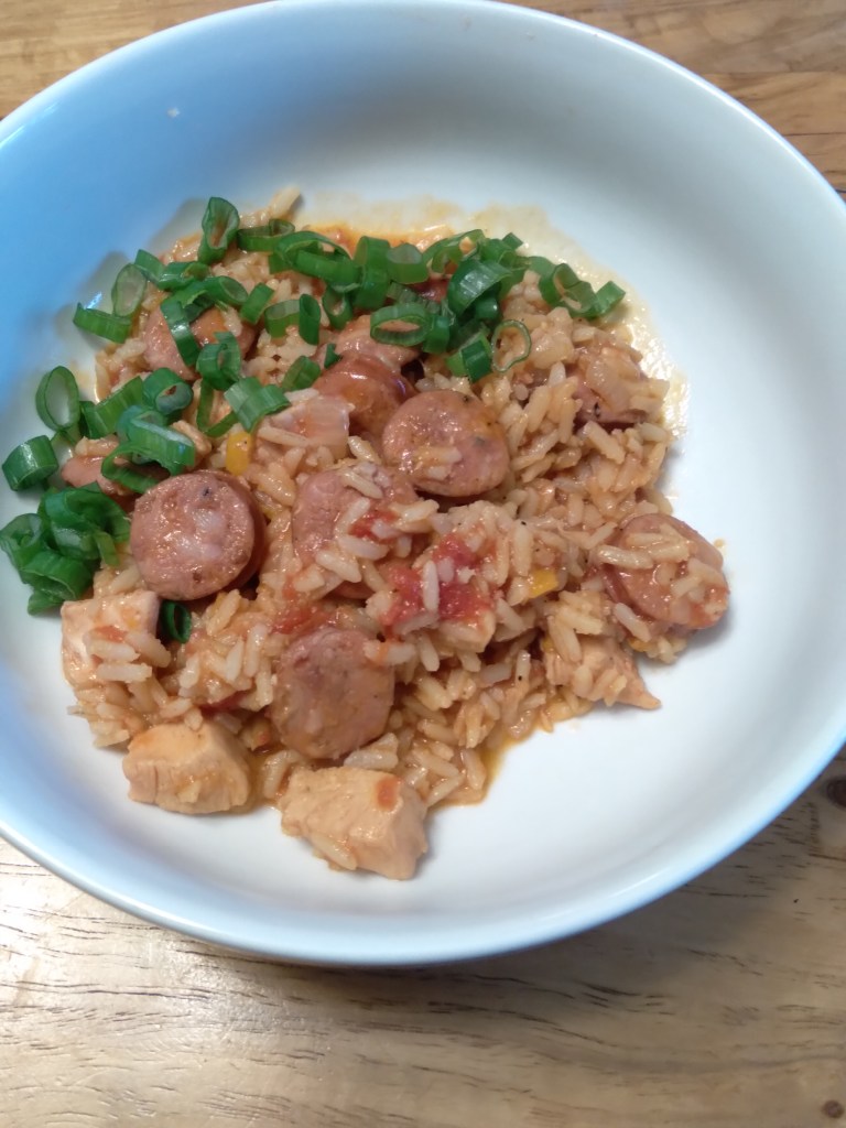 I like spicy, but if you follow the recipe this is almost to spicy. Use the first tablespoon of creole seasoning to season the chicken and then near the end taste and see if you need more. I did not make my seasoning I bought premade. I left out the shrimp and I used a yellow pepper instead of green. Authentic Jambalaya – The Daring Gourmet