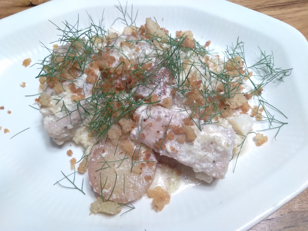 This dish is so creamy. It really is more of a fall dish. The combination of fennel and cabbage is really nice. I cut the pork loin into smaller pieces than the recipe calls for. I topped it with the fennel fronds instead of chives. http://www.finecooking.com/recipe/milk-braised-loin-of-pork-with-fennel-cabbage