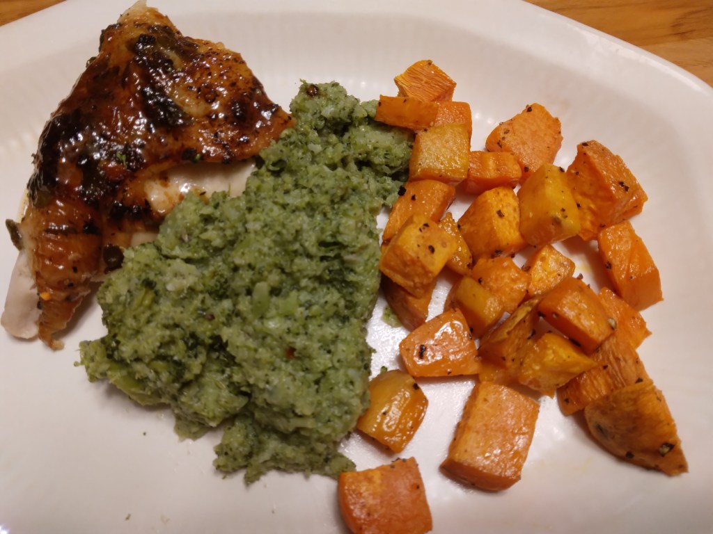 This was so fall. Roasted chicken, mashed broccoli and roasted sweet potatoes. I loved the simplicity of this dish. So very full of flavor.
