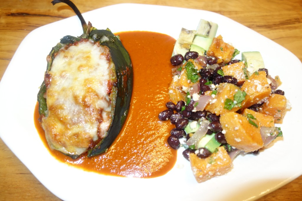 This is a Spanish influenced dish. A romesco with Gnocchi and manchego. So smoky. I used smoked paprika in place of the regular. I put the gnocchi, spinach and the sauce back into the pot that I cooked the gnocchi in and cooked it on low until the spinach wilted then added the cheese. https://www.cookinglight.com/recipes/gnocchi-with-spinach-and-pepper-sauce
